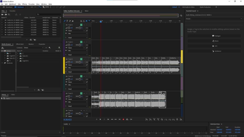 We were given a song that was split randomly into several pieces and we had to reorder them to complete the song using audition.