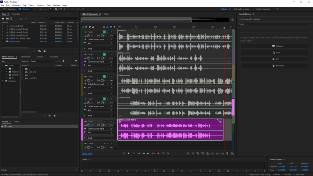 We were given audio clips that needed EQ adjustments to remove unwanted noise. We did this using audition.