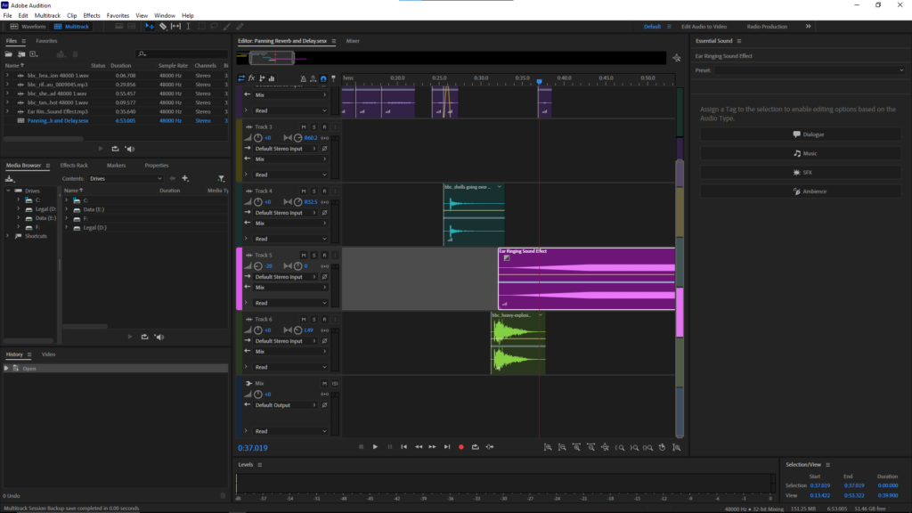 We got to download sounds from BBC Sound Effects and tried to make them sound like they were in a certain space using panning, reverb and delay in audition.