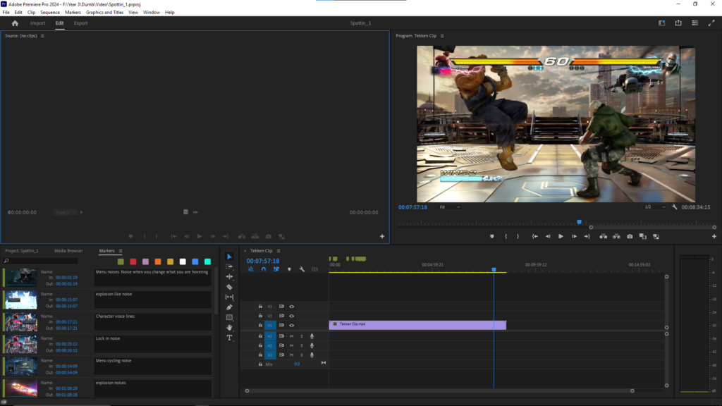 Spotting is when you go through a video and write down when you want certain sound effects to play. We went through two different methods of doing this:
