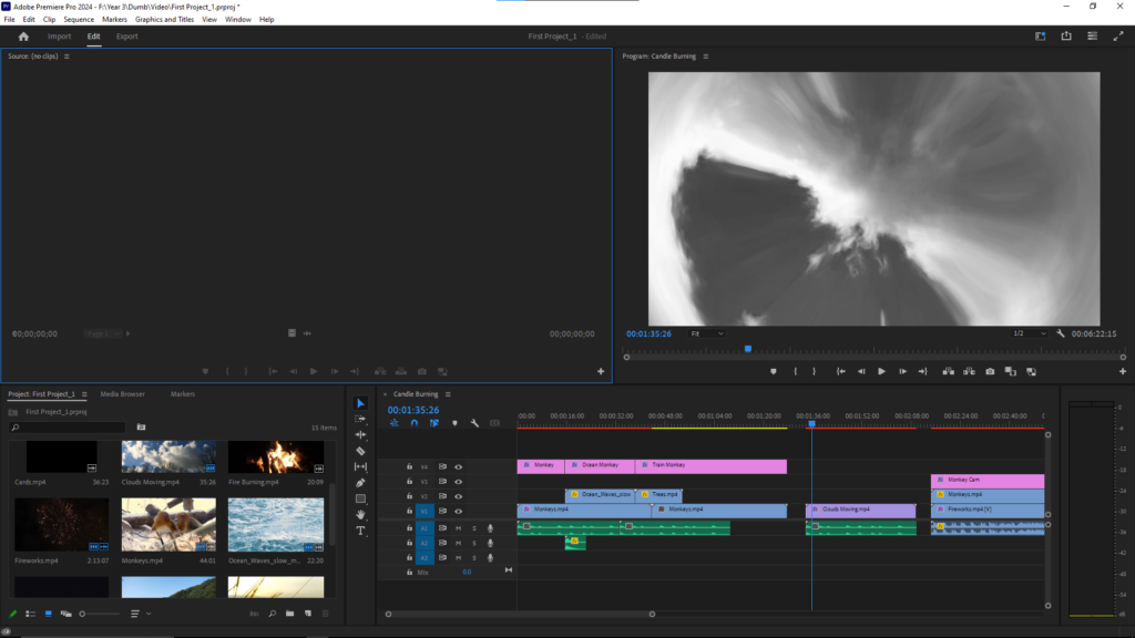 We got to play around in premiere pro to get used to how to use it and how to apply video effects to clips.