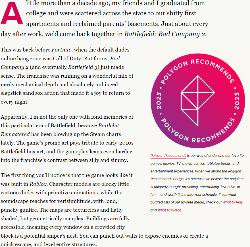 - Battlebit Remastered Visual Review (Polygon)