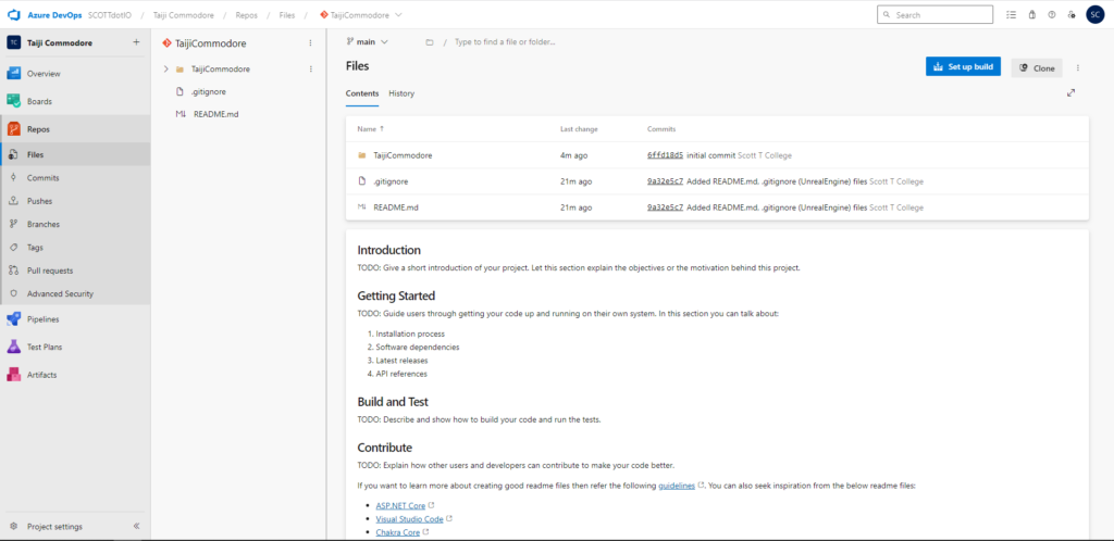 Git repo was made and initial commit was created with the unreal project along with it.