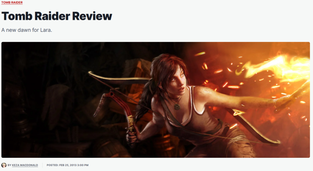 MacDonald, K. (2021). Tomb Raider Review. [online] IGN. Available at: https://www.ign.com/articles/2013/02/25/tomb-raider-review-2 [Accessed 13 Mar. 2025].