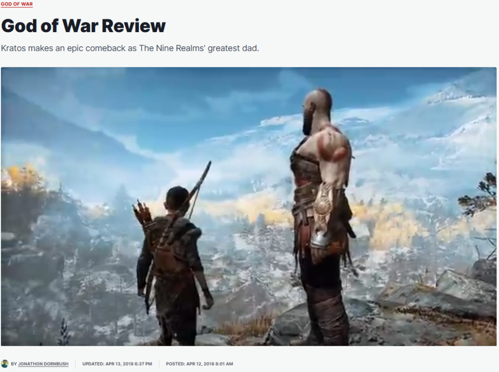 Dornbush, J. (2018). God of War Review – IGN. [online] www.ign.com. Available at: https://www.ign.com/articles/2018/04/12/god-of-war-review [Accessed 13 Mar. 2025].
