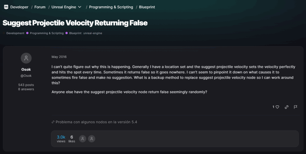 Osok (2016). Suggest Projectile Velocity Returning False. [online] Epic Developer Community Forums. Available at: https://forums.unrealengine.com/t/suggest-projectile-velocity-returning-false/63823 [Accessed 23 Apr. 2025].